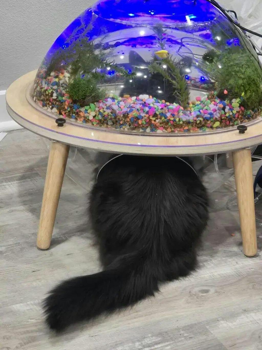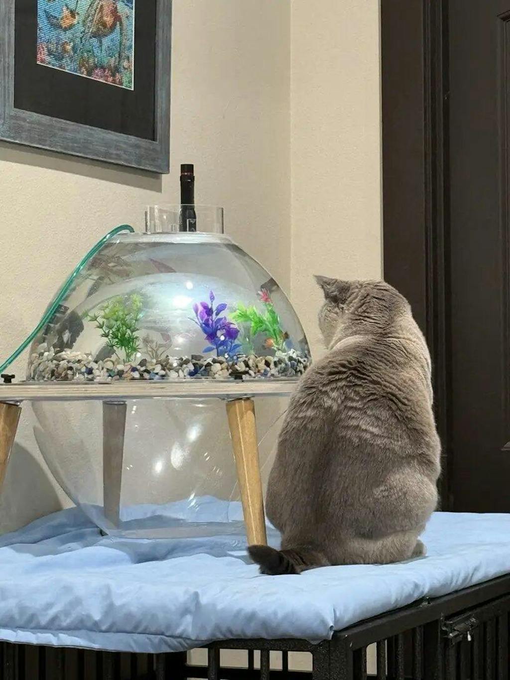 Cat grass planter, cat bed and fish tank: enhance home aesthetics, ensure cat comfort, and optimize space efficiency.